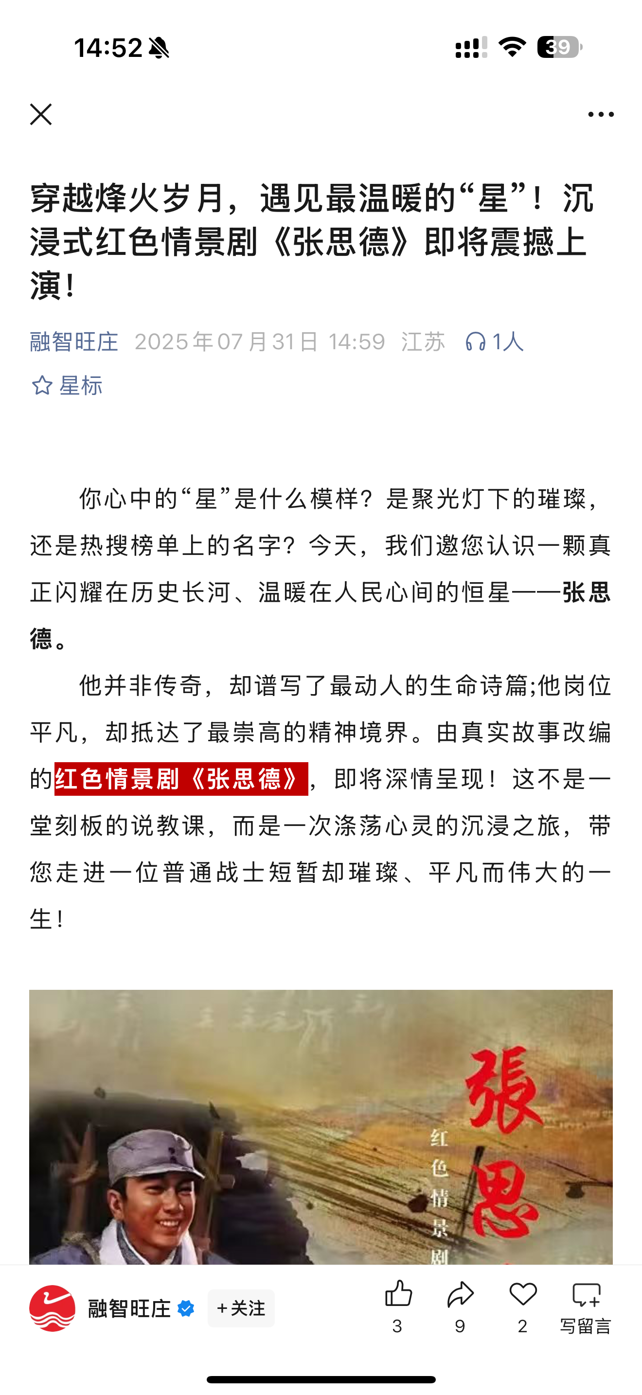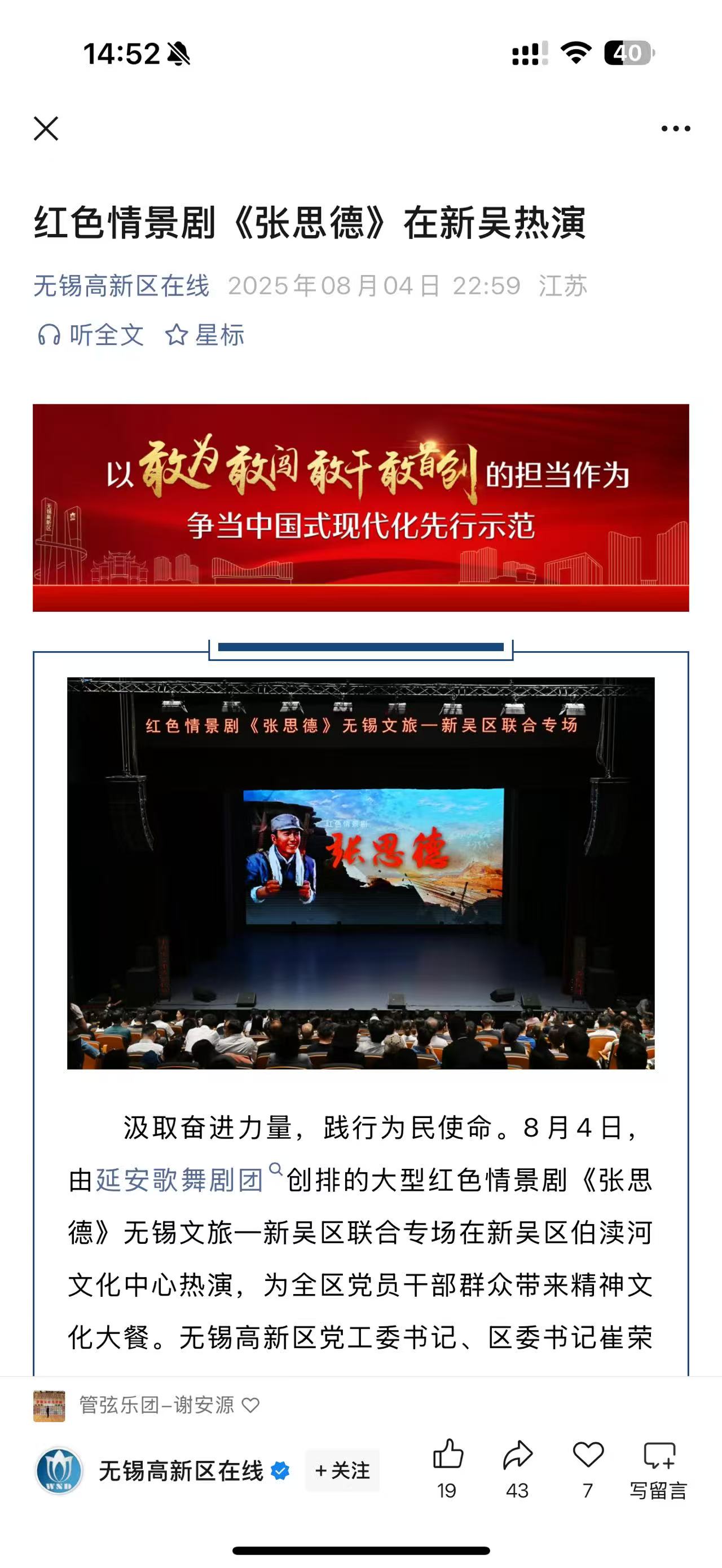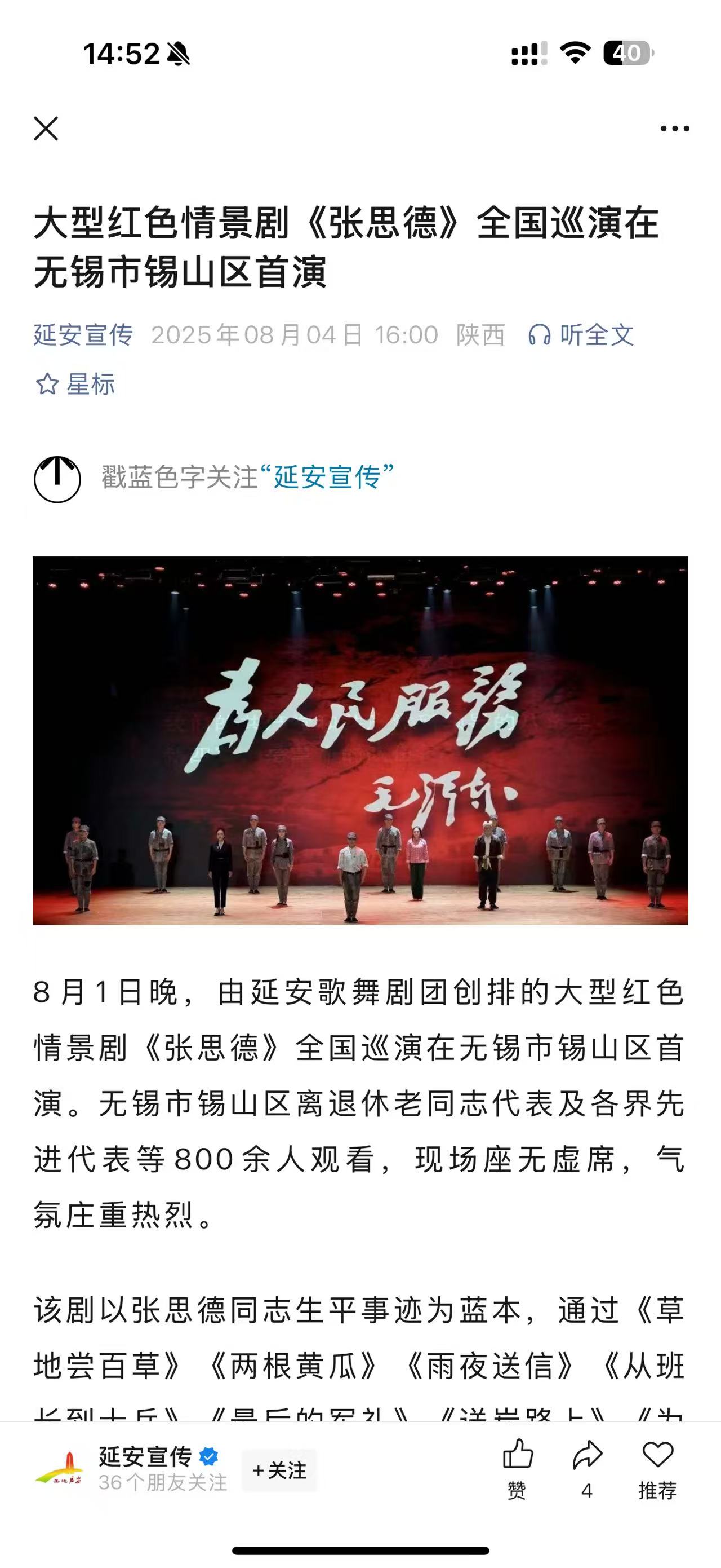 重温榜样力量,感悟奉献精神。由延安文化发展金沙乐娱城精心打造、延安歌舞剧团深情演绎的红色情景剧《张思德》自7月31日巡演以来持续升温,凭借其深刻的思想内涵与生动的艺术呈现,在观众中引发强烈情感共鸣,掀起观演热潮,收获社会各界热烈反响。
