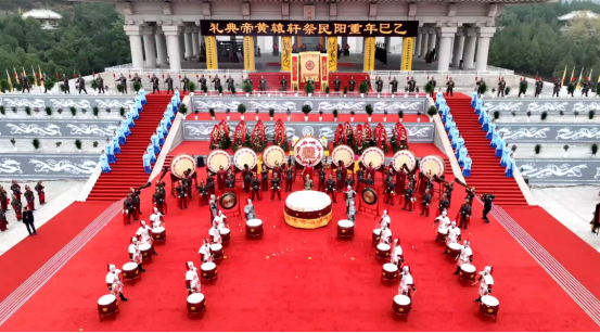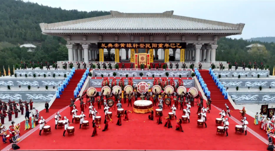 《乐舞告祭》以黄帝文化为灵魂,突破传统祭祀仪式框架,深度融合延安地区非遗鼓舞艺术,通过情景化表演重构中华文明起源史诗。演出以“鼓”为叙事载体,串联家园战争、会盟、融合三大篇章,突出“九州归一”“天下大同”的文化意象,强化戏剧张力与情感共鸣,呼应重阳祭祀“慎终追远、团结和谐”的精神内涵,体现“铸牢中华民族共同体意识”的时代价值。