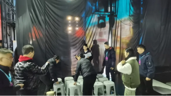 从会场整体设计到非遗文化展示区布置,从舞台搭建到数千平方米现场施工,再到文艺展演的排练与磨合及现场动线规划调整,每一环节都凝聚着团队的智慧与汗水。设计团队反复推敲方案,施工团队顶烈日、冒风雨连续奋战,演出团队日夜排练打磨细节,全体干部职工主动放弃节假日休息,连续多日加班至深夜。正是这种“分秒必争、精益求精”的战斗精神,确保了每一处细节均符合国家级盛会标准,为大会的顺利举办筑牢了坚实基础。